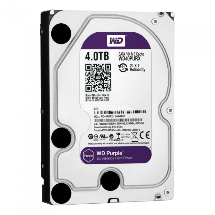 Накопичувач Western Digital WD40PURX рекомендований для використання в системах відеонагляду (для встановлення у відеореєстратори).