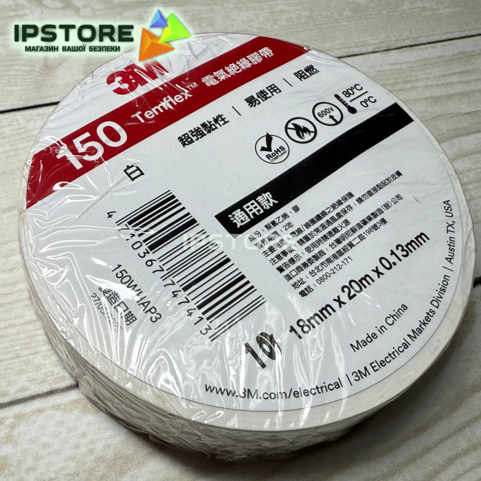 Вінілова ізоляційна стрічка Temflex 150 призначена для внутрішньої електроізоляції. Стійка до стирання, дії вологи і кислот. Колір: білий. Довжина - 20 м, ширина - 18 мм, товщина - 0.13 мм.